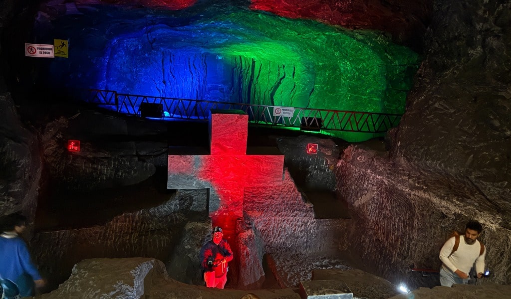 Uno de los espacios más impactantes es la nave principal, donde se encuentra una imponente cruz de 16 metros de altura, considerada una de las más grandes construidas bajo tierra. La iluminación estratégica resalta las texturas de la sal, creando un ambiente místico que sorprende a quienes la visitan. Además, la catedral cuenta con tres naves principales que simbolizan el nacimiento, la vida y la muerte de Cristo, reforzando su carácter espiritual.